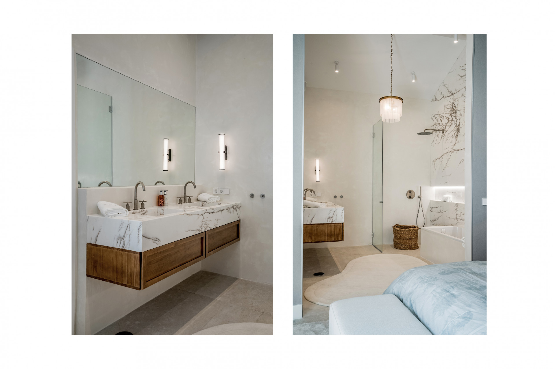 La suite principale est un sanctuaire en soi, avec une salle de bains de type spa, un dressing et un accès à l’une des deux magnifiques terrasses.