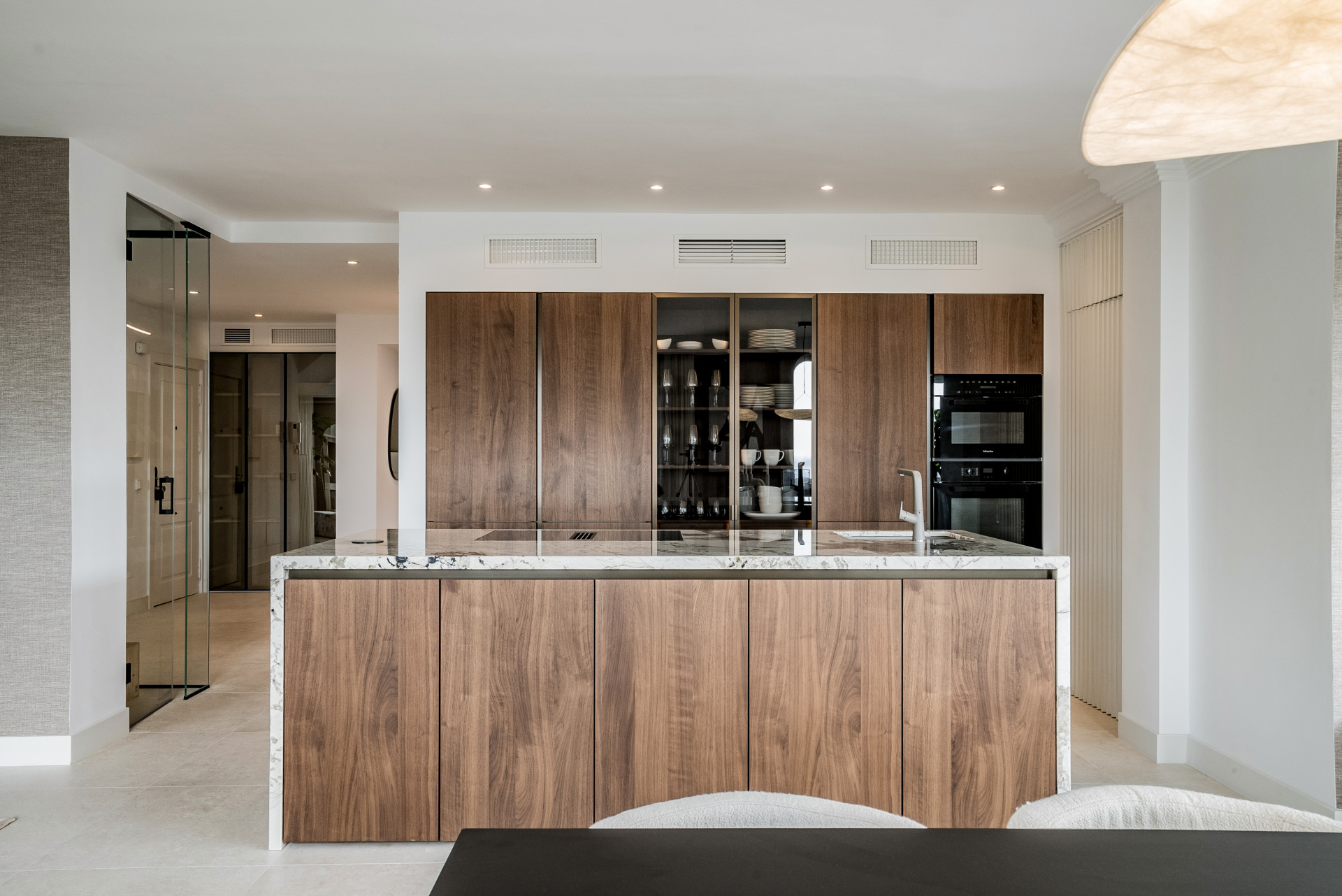 La cuisine est équipée d’appareils électroménagers haut de gamme, d’armoires personnalisées et d’un îlot central, pour que vos activités culinaires soient un plaisir.