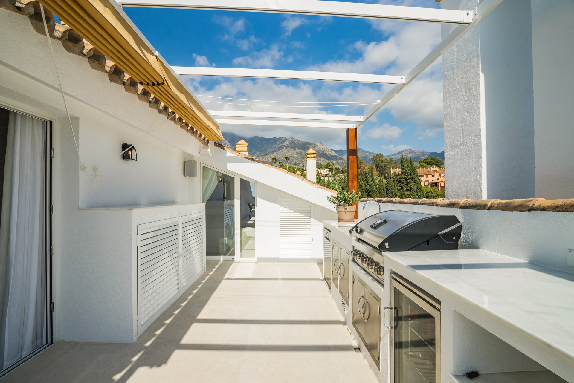 Ce spectaculaire penthouse sur le Golden Mile à Marbella offre des vues à couper le souffle. Il s´étend sur 2 étages avec 5 chambres à coucher et 4 ½ salles de bains. Ce penthouse a été méticuleusement rénové.
