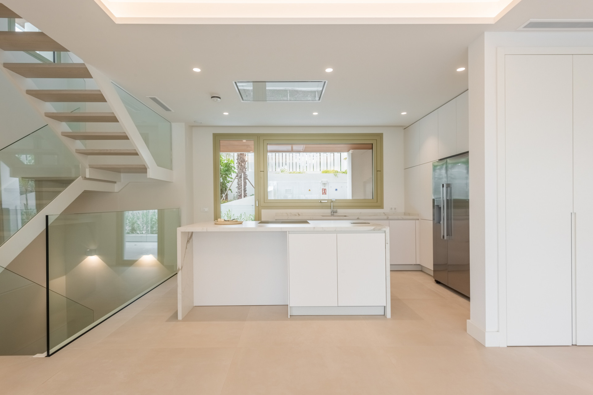 Imaginez que vous entrez dans un salon et une salle à manger ouverts, lumineux et aérés, qui se fondent sans effort dans une cuisine moderne entièrement équipée et ultramoderne. De là, l’accès à une grande terrasse privée et à un jardin vous invite à vous détendre ou à vous divertir dans un environnement extérieur exquis.