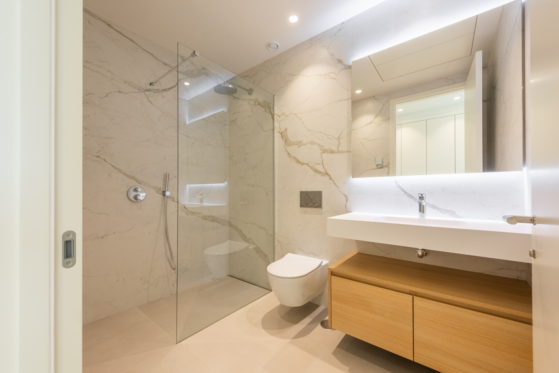 La propriété comprend quatre chambres aux dimensions généreuses, chacune accompagnée de sa propre salle de bains luxueuse, ainsi que des toilettes séparées pour plus de commodité. L’esthétique du design est à la fois contemporaine et intemporelle, avec des finitions haut de gamme.