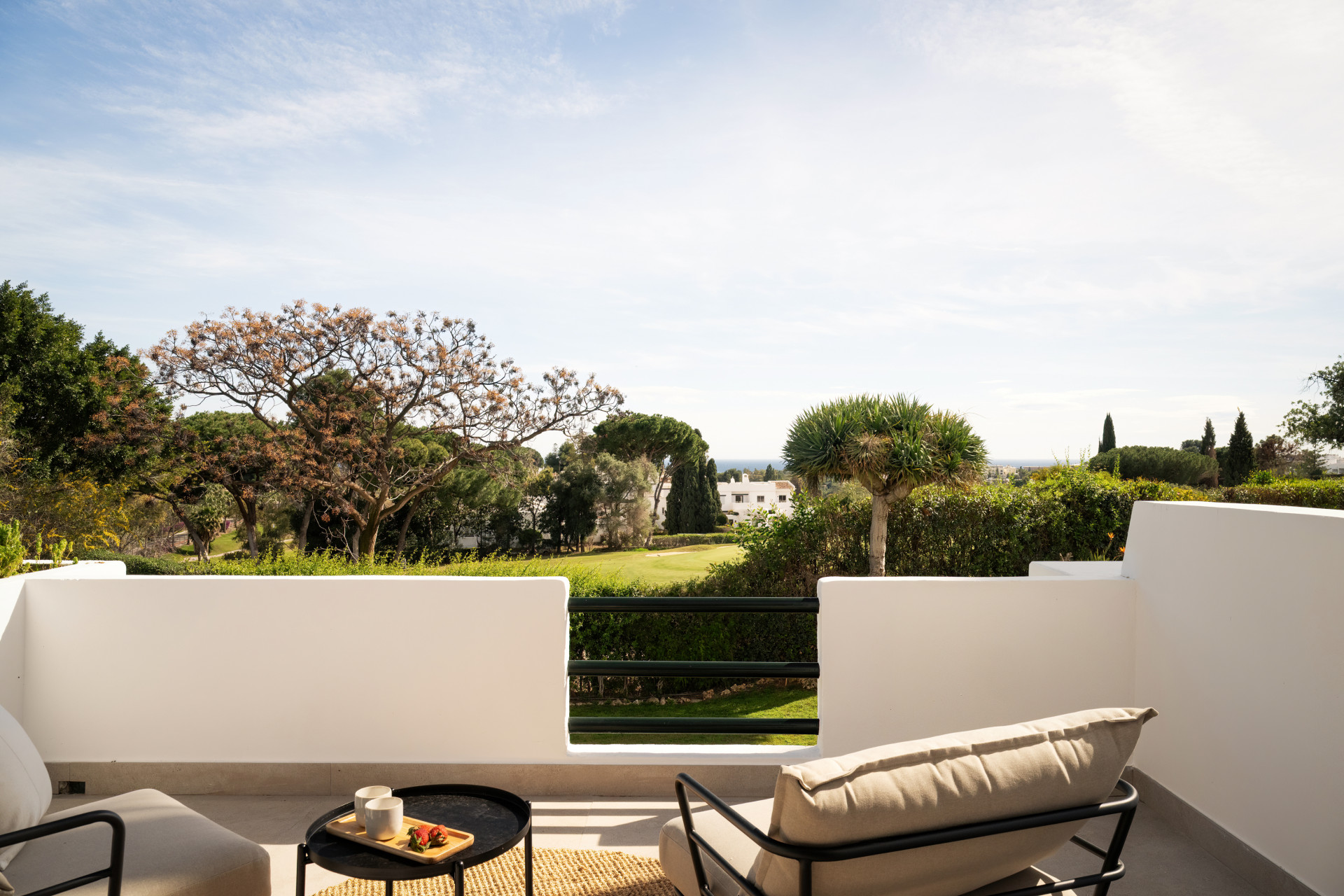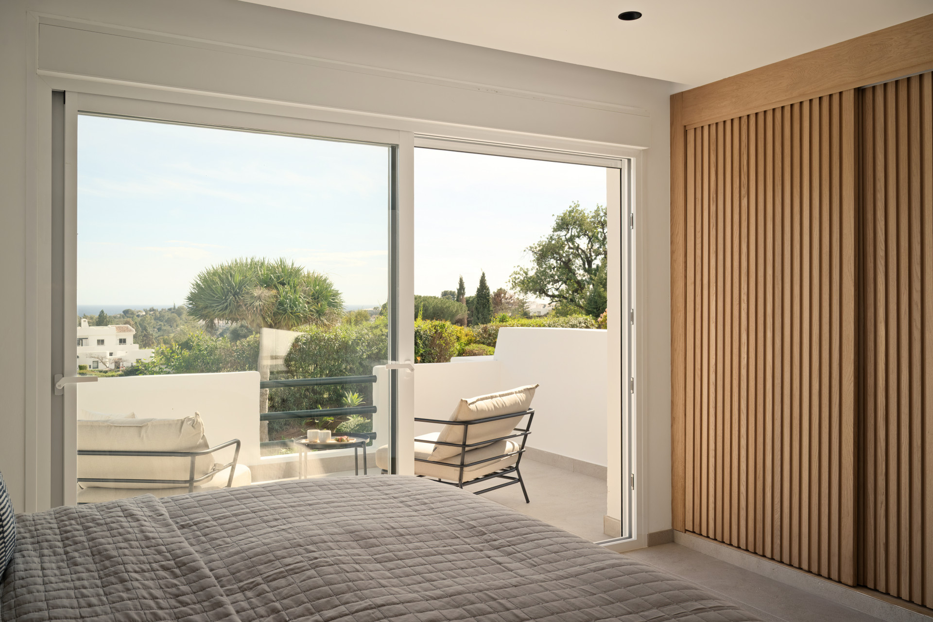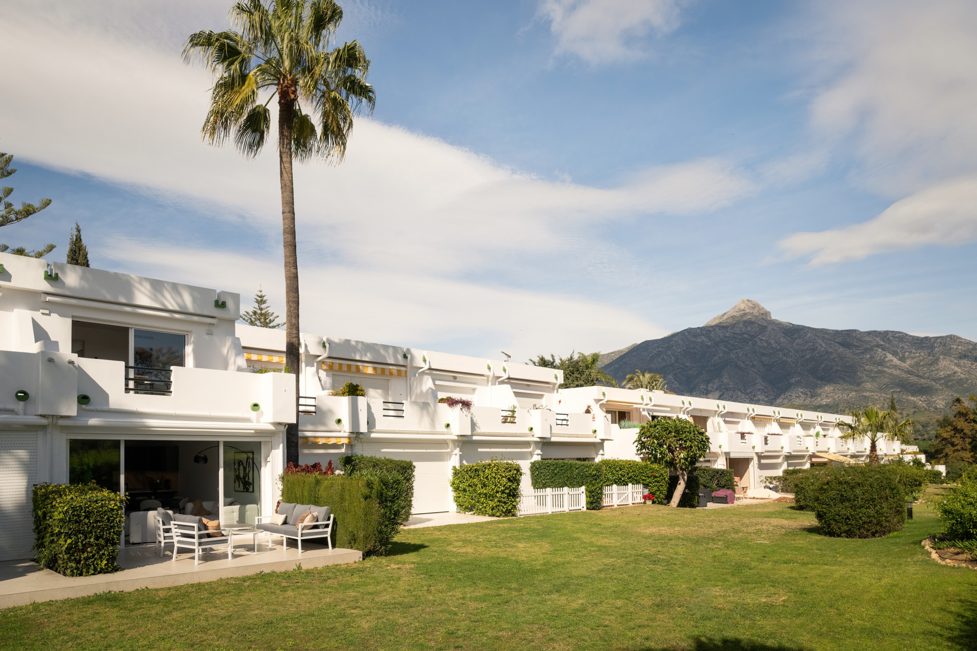 Algarrobos 53 est une maison de ville entièrement rénovée située à Los Algarrobos, Nueva Andalucía. Bénéficiant d’un emplacement privilégié à la lisière du golf Aloha et à seulement cinq minutes de Puerto Banús, avec un accès pratique à la Golden Mile, cette propriété orientée sud est conçue pour le confort et la vie en plein air. Située dans une communauté fermée et sécurisée, la maison est répartie sur deux étages avec un agencement pratique. Le rez-de-chaussée comprend deux chambres (dont une avec salle de bains attenante), une cuisine ouverte, un salon/salle à manger, des toilettes pour invités et une terrasse qui s’ouvre sur une galerie non couverte avec accès direct au parc communal. À l’étage, il y a deux chambres supplémentaires avec salle de bains attenante, chacune avec sa propre terrasse privée. La suite parentale offre une vue partielle sur la mer et le terrain de golf.